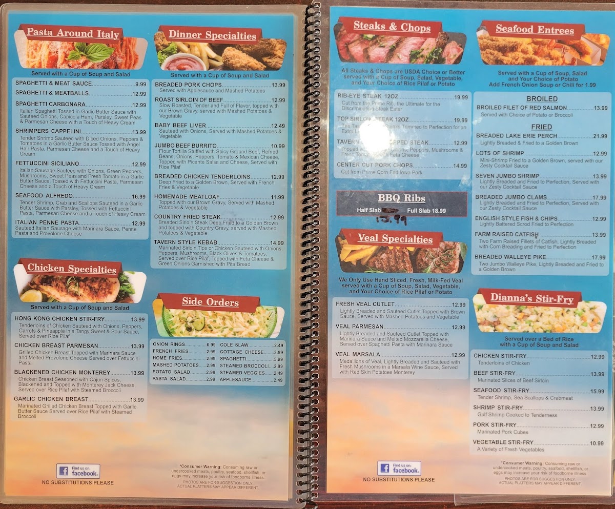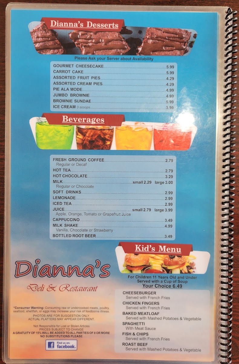 Dianna's Deli & Restaurant - Sandusky, OH Menu